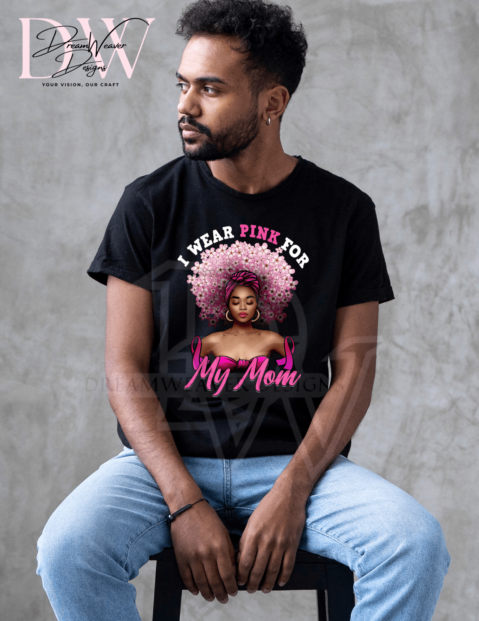 Show your support with the "I Wear Pink for My Mom" t-shirt, designed to honor those affected by breast cancer. Wearing this shirt not only raises awareness but also expresses your personal commitment to the cause. Its comfortable fit makes it perfect for everyday wear, helping you spread hope and solidarity wherever you go. Join the movement and make a meaningful statement in support of your mom and countless others.