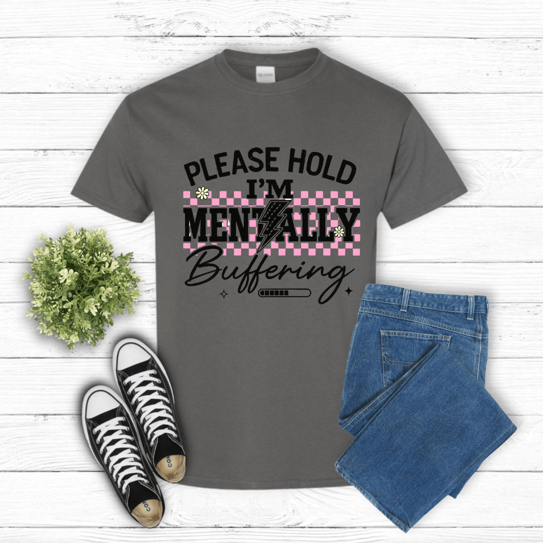 Keep things light and humorous with the Please Hold I'm Mentally Buffering sublimation t-shirt. Featuring a bold, lasting print, this playful tee captures those moments when your brain just needs a moment to catch up. Designed for comfort and everyday wear, it’s perfect for adding a fun, relatable touch to your casual wardrobe. Let your shirt do the talking while you take a mental pause.