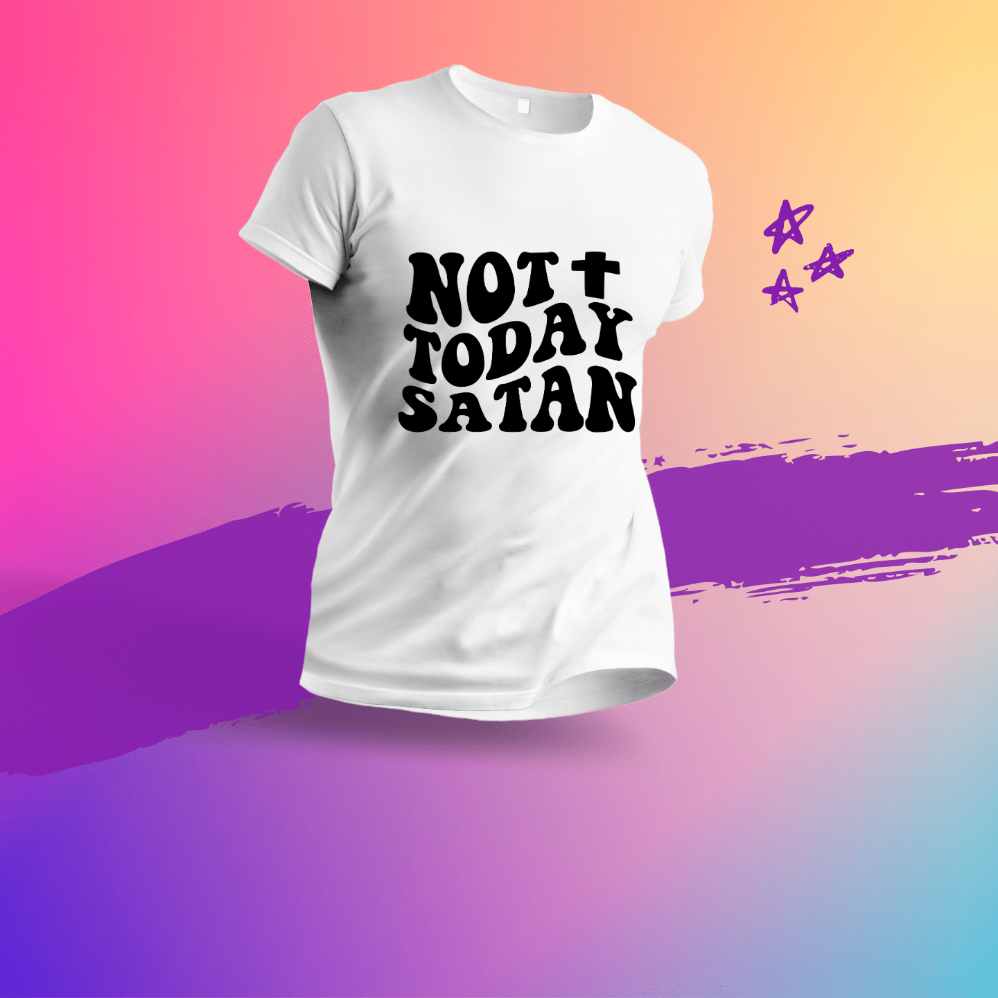 Embrace your inner strength and ward off negativity with the powerful "Not Today Satan" design. Get yours today and let the world know you won't back down. Believe in yourself and face any challenge with confidence and determination. Defy the odds, because today, Satan won't stand a chance!
